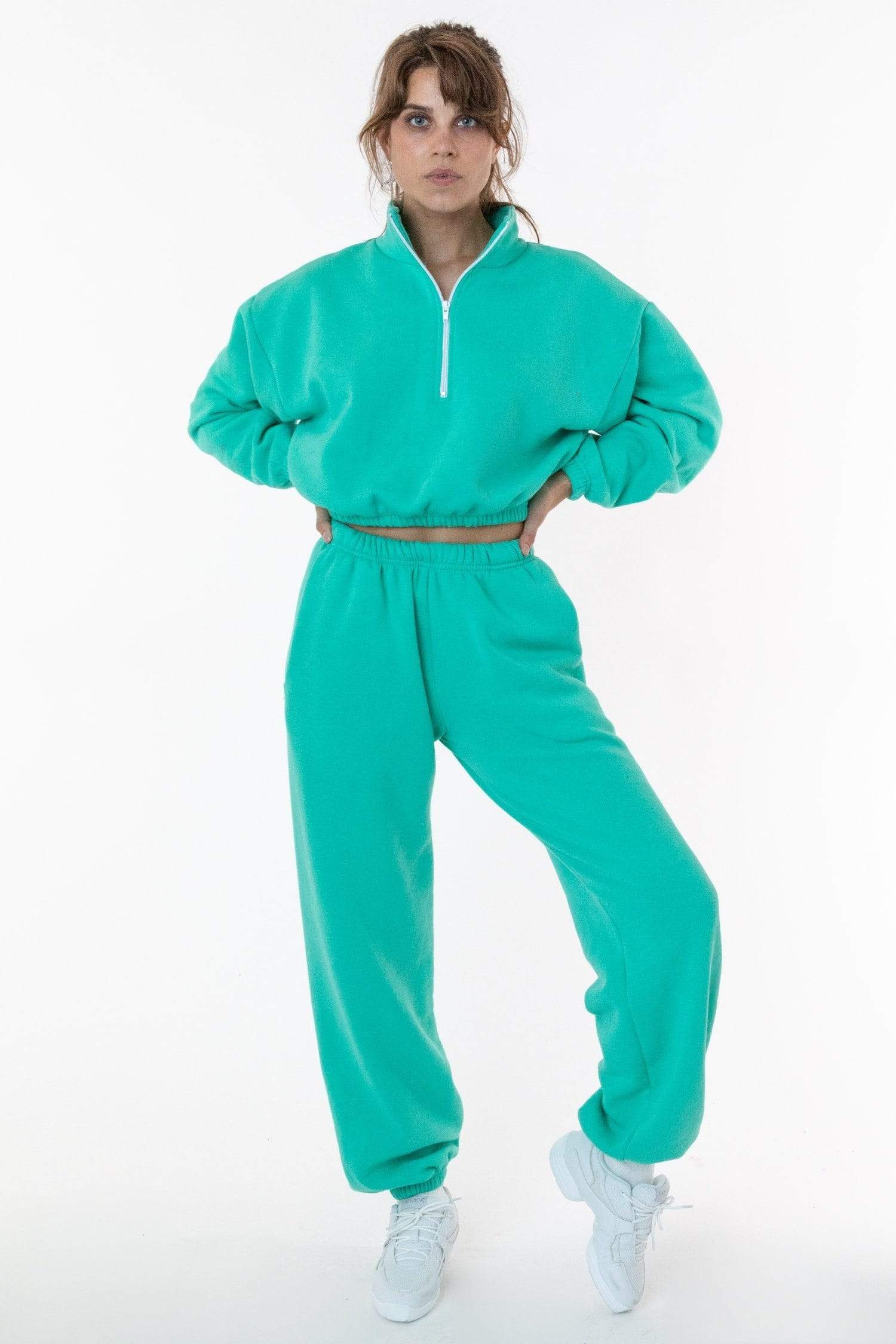 The Flex Fleece High Waist Sweatpant. This unisex pant features an adjustable drawstring and an elastic hem at the ankle. This fleece is soft and comfortable. Perfect for post workout, lounging at home or a trip to the grocery store. Pair with a bodysuit or crop top for a casual look or go bold with the matching Flex Fleece Half Zip Cropped Pullover. These sweatpants feature a high waist fit that accentuates your curves juxtaposed with a super baggy leg width.